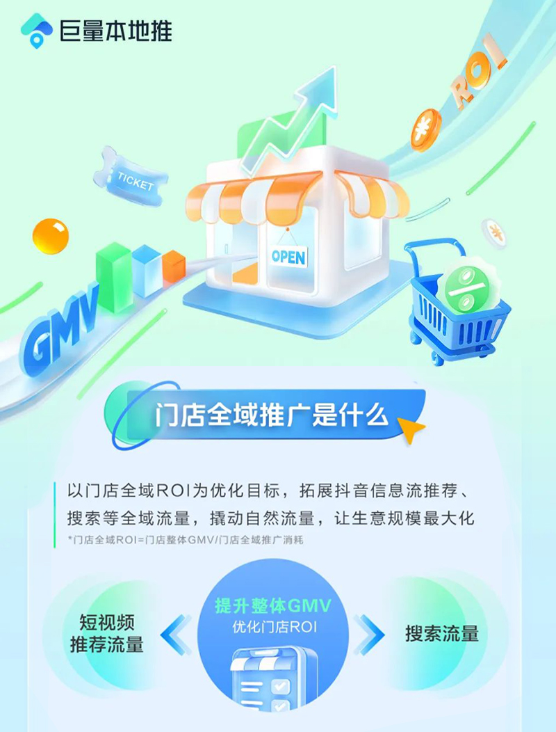 它主要是围绕门店全域投资回报率(ROI)来干活的。简单说,ROI 就是用门店总的商品交易金额(GMV)除以门店全域推广花的钱。通过这个指标,去拓展抖音上的信息流推荐、搜索等各种各样的流量,把自然流量也带动起来,这样就能把生意盘子做得更大。